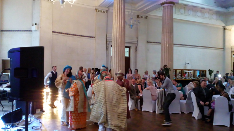 This wedding was really special as it was the first African wedding we do! Shortly after finishing our soundcheck at Portland House, guests started arriving. Some family members were dressed in tradicional Nigerian clothes. Pictures we took on the night don't really make justice to their colourful dresses. The room was full of colour and smiles. Then the couple entered the room also dressed in African clothes, absolutely stunning!