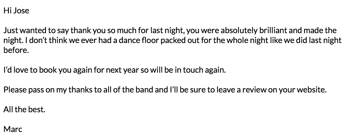 This morning we've checked our email and found some incredible words from Marc (who booked us) (check image reel).